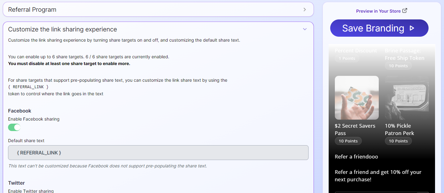 - Default Share Text: Predefine the text that will accompany the shared referral link, ensuring it aligns with your brand's messaging.