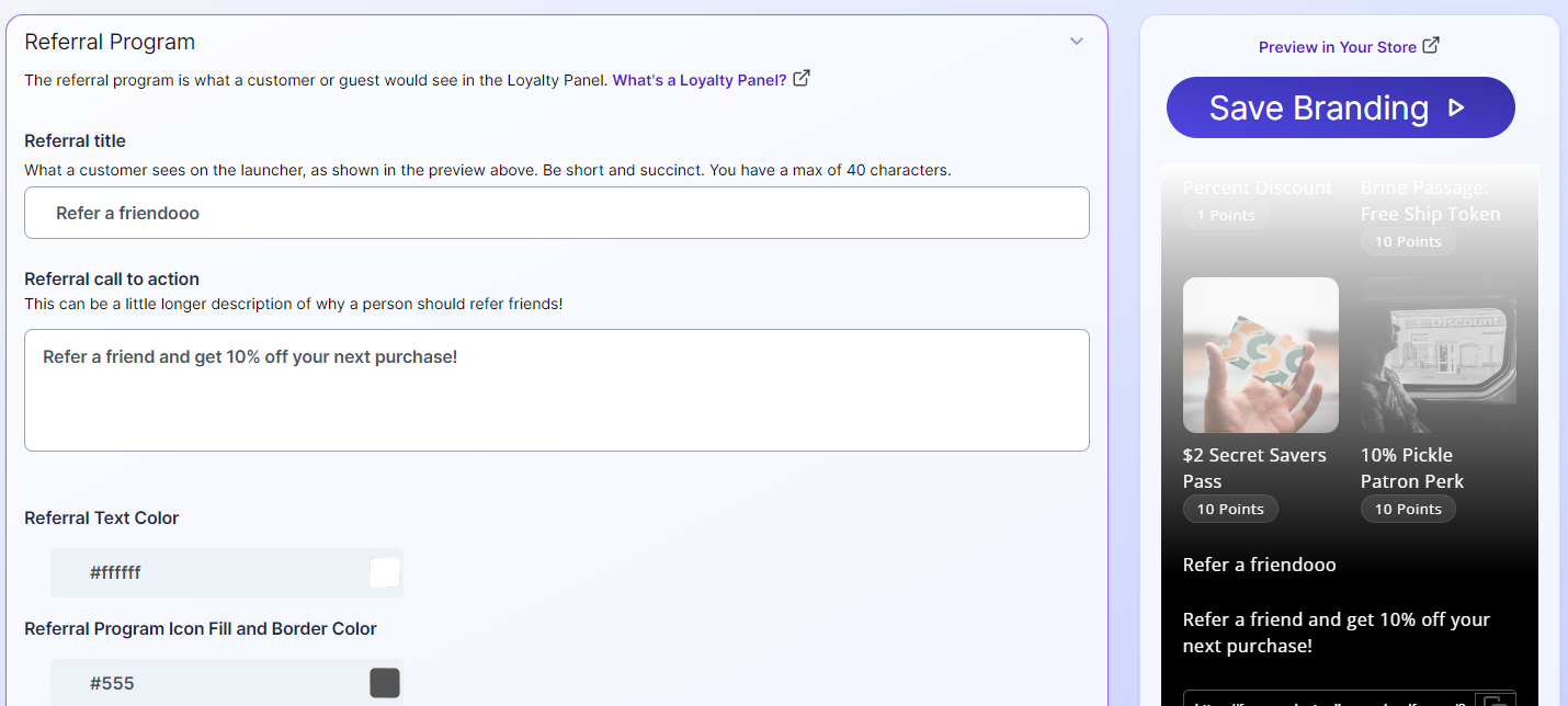By customizing the branding of your loyalty referrals, you can create a visually appealing and consistent experience that encourages customers to participate in your referral program and promote your brand to their friends and family.