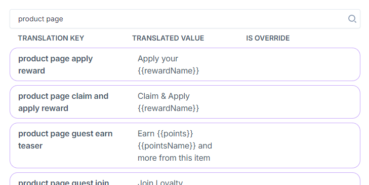 - Type "Product Page" into the translations search area to see all the text used in the Promo Box, as depicted below