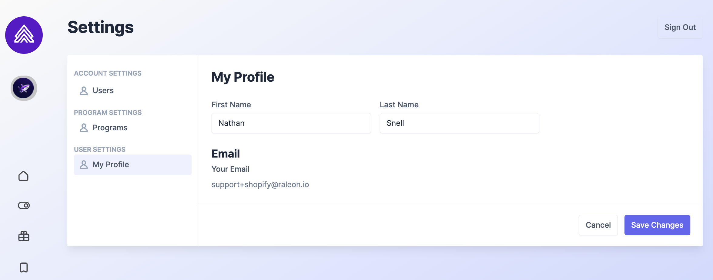 To update your personal information in Raleon such as your name: