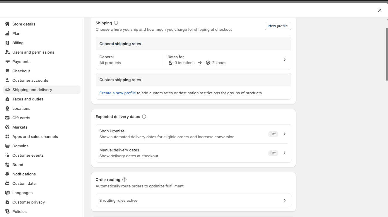 - From your Shopify admin page, go to Settings -> Shipping and Delivery